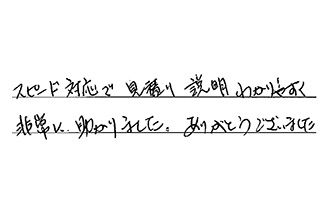 スピード対応で、見積り・説明わかりやすく、非常に助かりました。ありがとうございました。