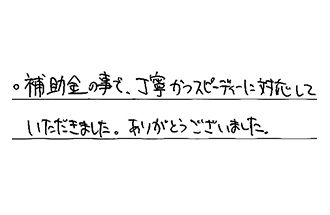 補助金の事で、丁寧かつスピーディーに対応していただきました。ありがとうございました。