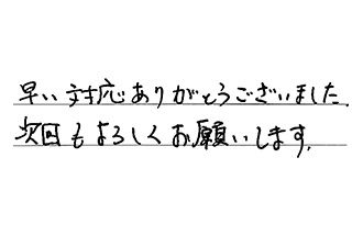 早い対応、ありがとうございました。次回もよろしくお願いします。
