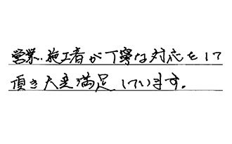 営業・施工者が丁寧な対応をして頂き、大変満足しています。