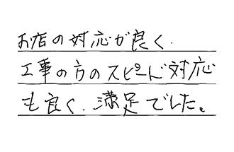 お店の対応が良く、工事の方のスピード対応も良く、満足でした。