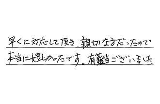 早くに対応して頂き、親切な方だったので、本当に嬉しかったです。有難うございました。