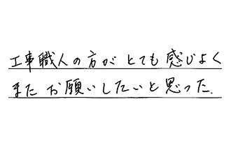 工事職人の方が、とても感じよく、またお願いしたいと思った。
