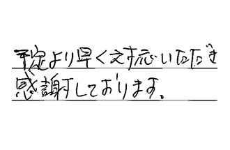 施工までの日数が思っていたより早かった。大変よろこんでいます。ありがとうございました。