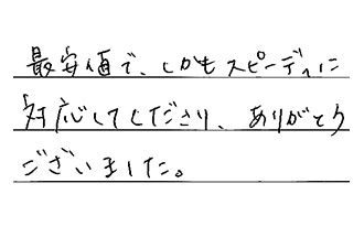 最安値で、しかもスピーディに対応してくださり、ありがとうございました。