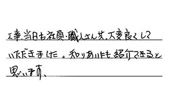 工事当日も、社員・職人さん共、大変良くしていただきました。知りあいにも紹介できると思います。