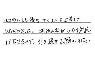 電話の対応、営業さんの対応など、親切・丁寧で、次回、何かありましたら、お願いしたいと思います。有難うございました。