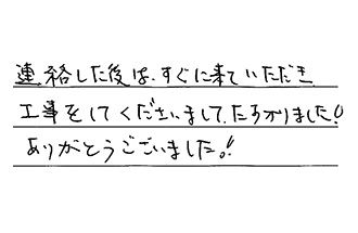 見積り依頼の電話をかけた時から、ていねいな対応をしていただきました。仕上がりもとても満足しています。ありがとうございました。
