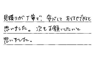 見積りが丁寧で、安心してお任せできると思いました。次もお願いしたいと思いました。