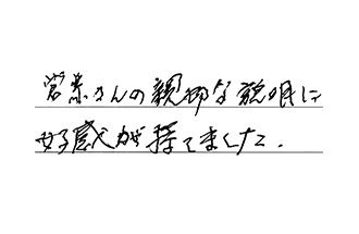 仕様だったり、お得感だったりを顧客目線で考えて下さって、とても親切でした。また何かありましたら、よろしくお願いします。