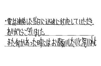 電話連絡した当日に迅速に対応していただき、ありがとうございました。また何かあった時には、お願いしたいと思います。