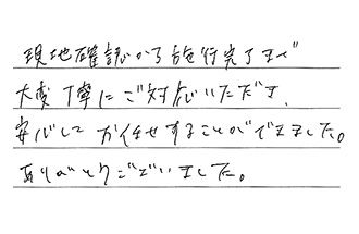 現地確認から施工完了まで、大変丁寧にご対応いただき、安心してお任せすることができました。ありがとうございました。