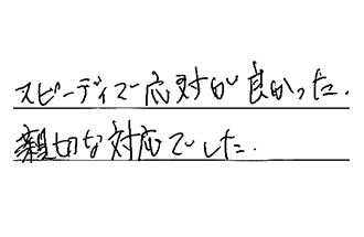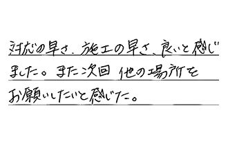 対応の早さ、施工の早さ、良いと感じました。また次回、他の場所をお願いしたいと感じた。