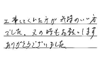 工事してくれた方が、気持のいい方でした。又の時もお願いします。ありがとうございました。