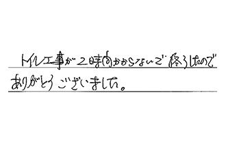 1階の便器交換と壁紙のはりかえ、2階の便器交換と壁紙のはりかえ、ガス給湯器の交換をお願いしました。お盆の期間ありましたのですが、職人さんの日程があるので、2回になるとのことでしたが、調整していただいて、1回で済むように手配していただき、大変たすかりました。