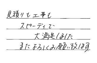 見積りも工事もスピーディで、大満足しました。また、よろしくお願い致します。