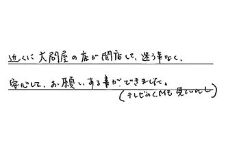 近くに大問屋の店が開店して、迷う事なく、安心して、お願いする事ができました。(テレビのCMも見ていたし)