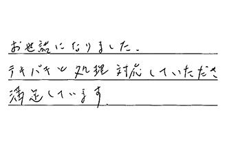 お世話になりました。テキパキと処理・対応していただき、満足しています。
