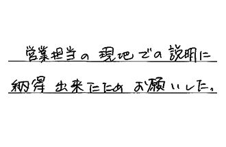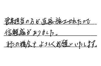 営業担当の方が直接施工されたので、信頼感がありました。またの機会もよろしくお願いいたします。