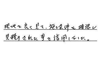 現地を良く見て、施工条件を確認し、見積りされた事を信用しました。