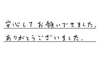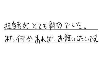 見積り当日、こちらから質問する前に、貴店の方が説明して下さり、大変納得しました。当方(客側)は何が不明なのかもわからない者にとっては、安心しました。