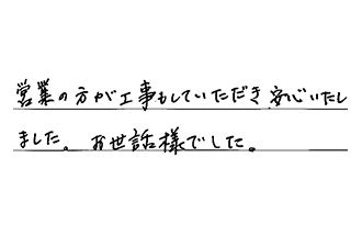 とにかくスピード感のあるご対応をいただき、感謝しております。また他に修理等がありましたら、お願いしたいと思います。ありがとうございました!