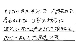 他社の見積りも取ろうと思ったのですが、来られた人の説明が丁寧で、誠実そうな人だったので、すぐに決めて、数日で工事していただきました。