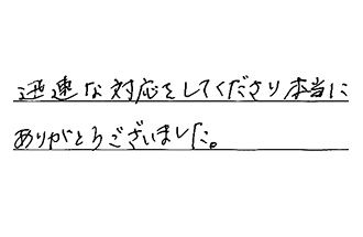 すぐに対応して頂いて助かりました。暑い中の修理でしたが、快くやって下さり、有り難かったです。本当にありがとうございました。