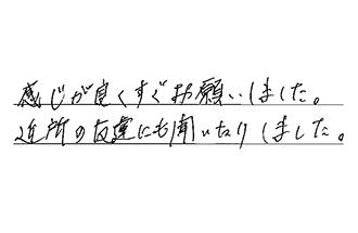 感じが良く、すぐお願いしました。近所の友達にも聞いたりしました。