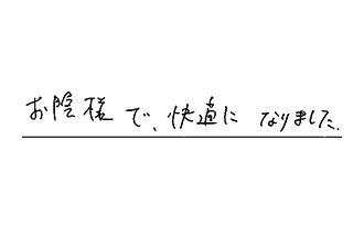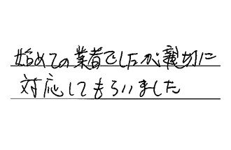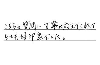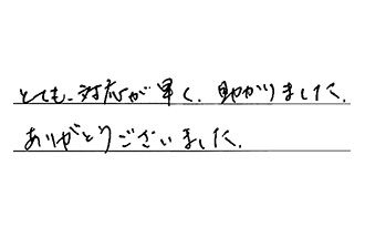 店舗で説明を受けてから施工まで、とてもスムーズでした。営業の方も親切で、好印象でした。ありがとうございました。