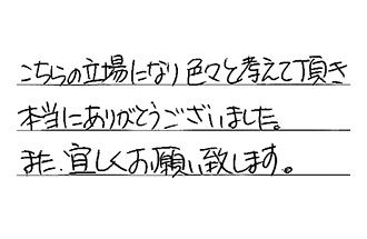 迅速かつ丁寧な対応をしていただき、大変満足しています。ありがとうございました。