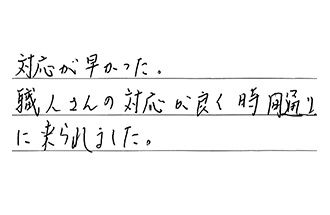 思っていたより、安く交換できてよかった。また、すぐに作業していただき、とても良かったです。今後も、何かあれば相談します!