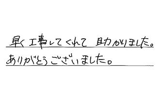 早く工事してくれて助かりました。ありがとうございました。