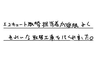 急なお願いでしたが、年内に施工していただき、ありがたかったです。事前の見積りの際、今の機器の不具合も見てくださり、工事まで安心して使うことができました。ありがとうございました!