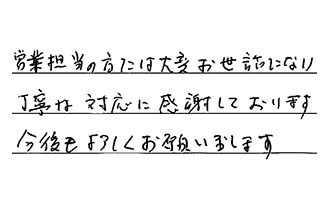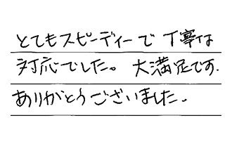 今回は大変お世話になりました。とても丁寧にやっていただき、ありがとうございました。