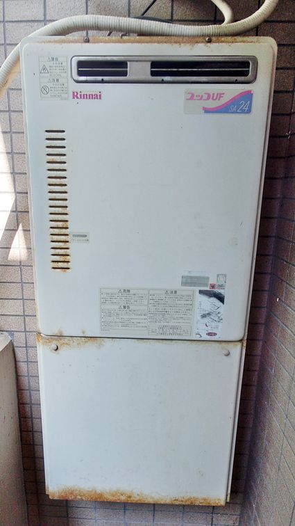 既設のノーリツ製のエコジョーズ給湯器 GT-C2452AWX から、リンナイ製のエコジョーズ給湯器 RUF-UE2406AW(A) への取替でした。