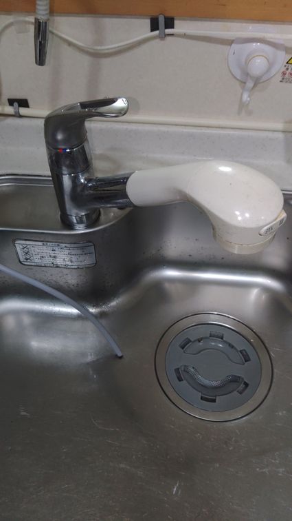 既設のキッチン水栓から、TOTO製のキッチン水栓 TKS05305JA への取替でした。