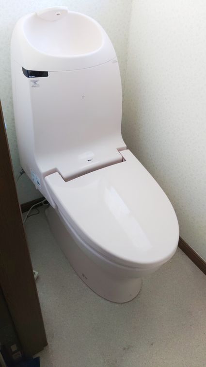 以前のTOTO製の一体型トイレから、現行のTOTO製のトイレ ピュアレストQR への取替でした。