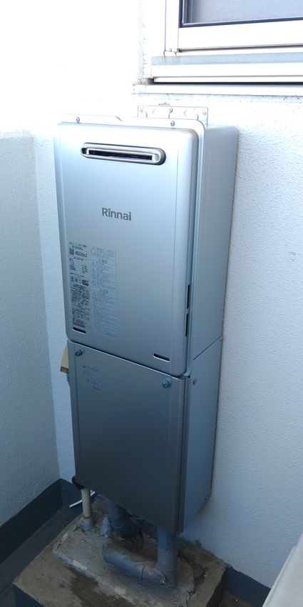 以前のリンナイ製の給湯器 RUF-K242SAW から、現行のリンナイ製のエコジョーズ給湯器 RUF-UE2406AW(A) への取替でした。