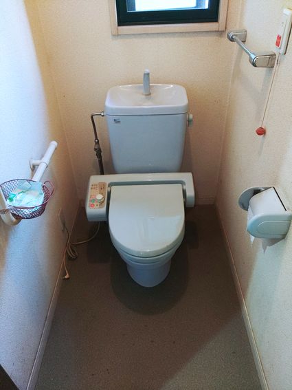 既設のトイレから、リクシル製のシャワートイレ一体型トイレ プレアスLSタイプへの取替でした。