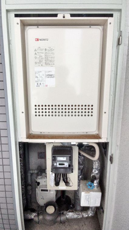 東京都杉並区の集合住宅にて、ガスふろ給湯器の取替工事を行いました。