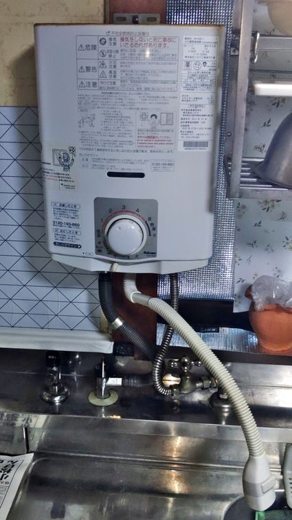以前のパロマ製の湯沸かし器 PH-5BV から、現行のパロマ製の湯沸かし器 PH-5BN への取替でした。