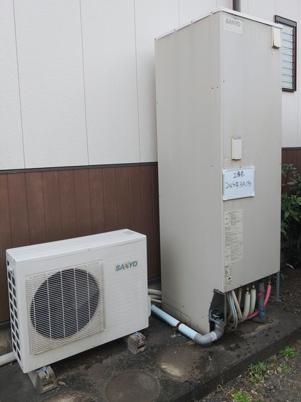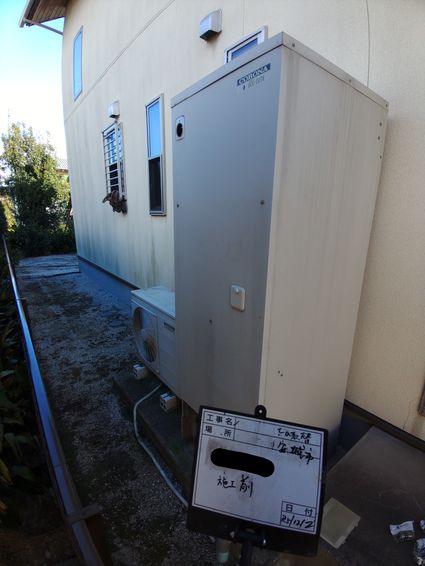 既設の朝日ソーラー製のエコキュート ASQ-3701FS から、コロナ製のエコキュート CHP-E37AY6 への取替でした。