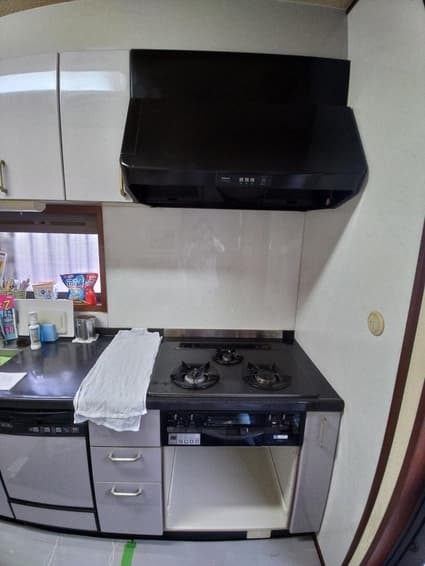 岐阜県美濃市にお住まいのお客様宅にて、ビルトインコンロ・レンジフードを交換致しました。