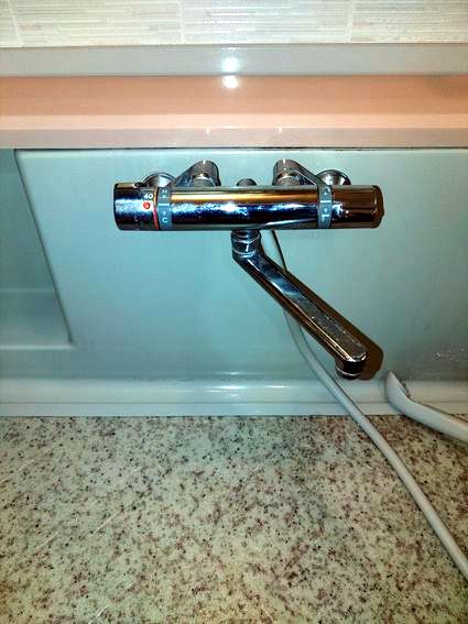 既設のシャワーバス水栓から、リクシル製のシャワーバス水栓 クロマーレS BF-KA145TSG への取替でした。