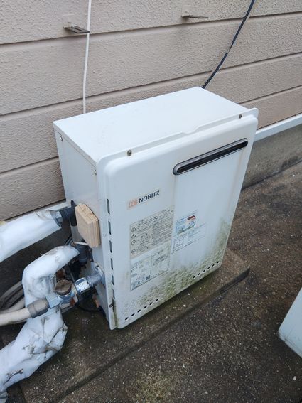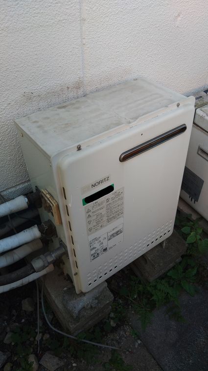 既設のノーリツ製の給湯器 GT-2450SARX から、パロマ製のエコジョーズ給湯器 FH-E2422SARL への取替でした。