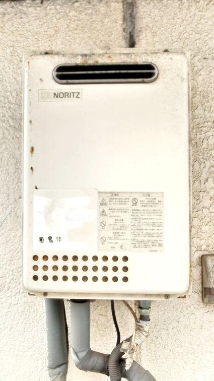 以前のノーリツ製の給湯器 GQ-2037WS から、現行のノーリツ製の給湯器 GQ-2039WS-1 への取替でした。