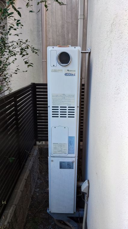 東京都世田谷区の集合住宅にて、ガスふろ給湯器の取替工事を行いました。