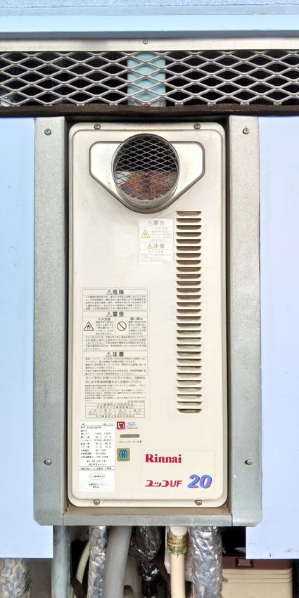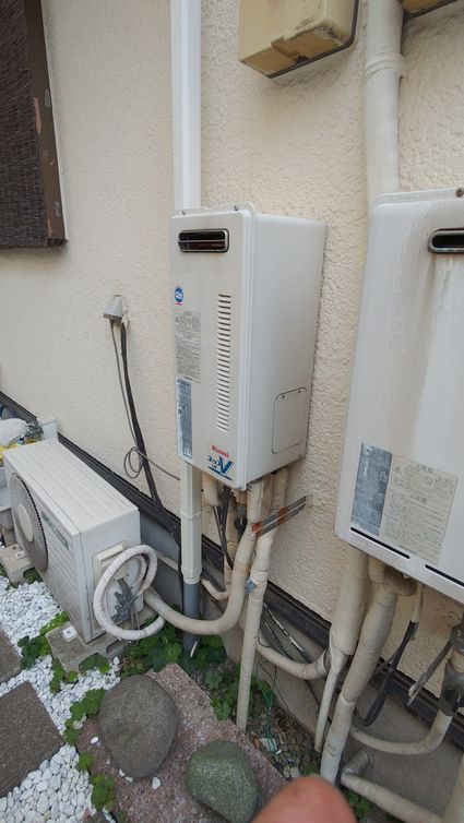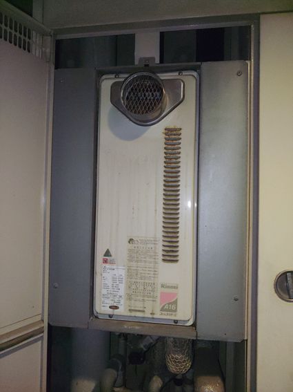 以前のリンナイ製の給湯器 RUF-VS1611SAW から、現行のリンナイ製のスリム型給湯器 RUF-SA1615SAW(A) への取替でした。
