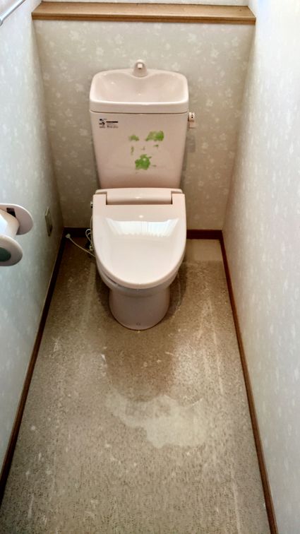 トイレ室内の向かって右奥に、柱が通っていたため、トイレタンクは、レバーが向かって左側に付いているものへの取替でした。